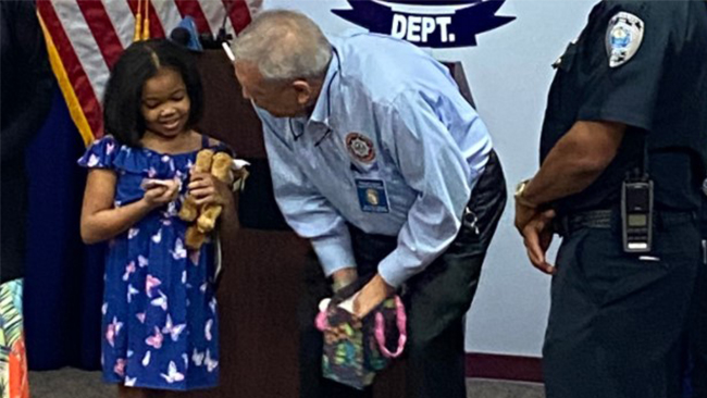 Chief Adderley honored a 9-year old child today for bravery as she ran to her mother’s defense to fend off a brazen robber. An #arrest was swiftly made in this case.