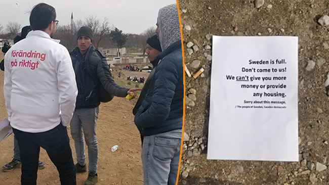 – Både genom att se med egna ögon och genom att prata med migranter och polis. Vi delar även ut flygblad med budskapet om att Sverige är fullt.