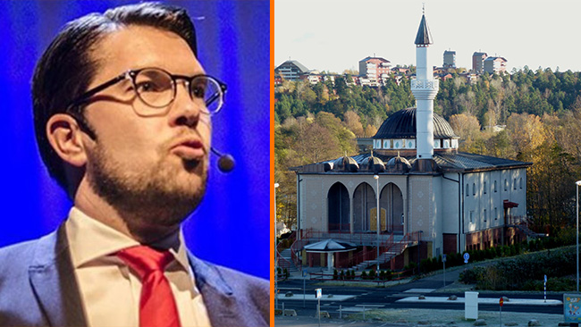 – På sikt behöver vi börja konfiskera och riva moskébyggnader där det sprids antidemokratisk, antisvensk, homofob eller antisemitisk propaganda eller allmän desinformation om det svenska samhället. Minareter, kupoler, halvmånar eller andra attribut som tjänar som islamistiska monument i stadsbilden bör helt tas bort, sade SD-ledaren enligt Aftonbladet.