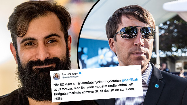 Inte helt oväntat möter Bali hård kritik för den tweeten. ”När SD visar sin islamofobi rycker moderaten @hanifbali ut till försvar. Med liknande moderat undfallenhet i ett budgetsamarbete kommer SD få det lätt att styra och ställa”, menar finansmarknadsminister Åsa Lindhagen (Mp).