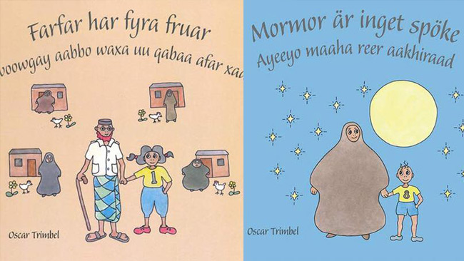 ”Asli har aldrig varit i Somalia, men nu skall hon äntligen få åka dit med sin pappa, för att träffa farfar och alla sina farmödrar”. Så presenteras barnboken ”Farfar har fyra fruar” hos bokhandlaren Adlibris. På omslaget syns vad som ser ut att vara en tecknad somalisk man med skägg och de fyra fruarna i bakgrunden. Samtliga fruar är klädda i heltäckande klädsel.