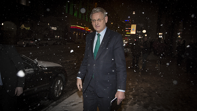Carl Bildt ute på hal is. Foto: Albin Lindstedt / Nyheter Idag