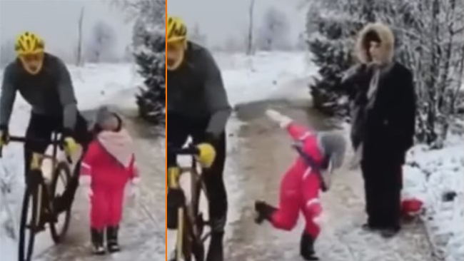 Det hela fångades på film av flickans far, som publicerade filmklippet på sociala medier där det blev viralt.
