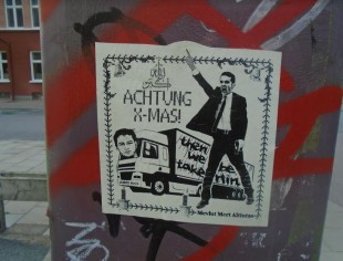 – Jo, det är ju en enkel grej. Använda Hitler och hakkors, det kan man ju göra med vänsterhanden. Eller högerhanden snarare. Jag tycker man borde sälja t-shirts med hakkors, så blir det vanligt och så bryr sig inte folk sedan. Det är bara ett hakkors, so what liksom. Jag tror inte hårda riktiga nazister går omkring med Hennes & Mauritz-t-shirt om det blir trendigt bland folk.