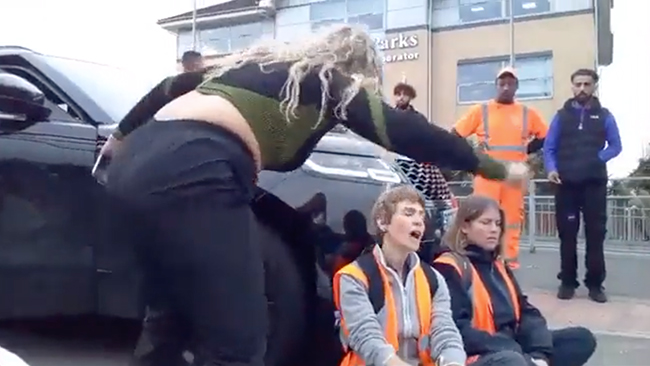 – Min son är 11 och behöver komma till skolan och jag behöver komma till jobbet, så flytta er ur vägen! fräste den rasande mamman till aktivisterna.