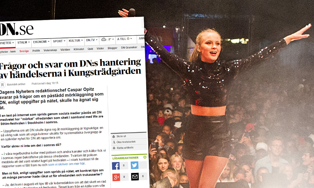 Men när Dagens Nyheter ikväll i en artikel svarar på den massiva kritiken mot att tidningen tystat ned händelserna i Kungsträdgården hävdar tidningen att det var polismyndigheten, inte de, som försökte mörklägga händelserna i festivalparken.