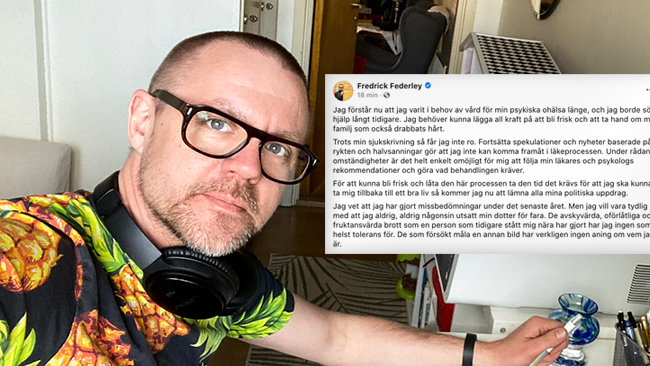 BJÖRBO Centerpartiets EU-parlamentariker Fredrick Federley lämnar alla sina politiska uppdrag. Det skriver han i ett inlägg på Facebook där han undviker att berätta mer om sin relation med den dömde pedofilen. I stället anklagar han nyhetsbevakningen för att vara baserad på ”rykten och halvsanningar” och att det är orsaken till att han ”inte kan komma framåt i läkeprocessen”.