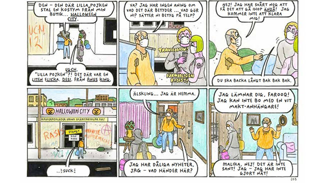 ”Det verkade som hela den nordamerikanska alternativa seriescenen var upptagna med att suga antifas kuk och gå till lama angrepp på Trump. Jag ville erbjuda något annorlunda, något riktigt alternativt” skriver Simon Hanselmann till Nyheter Idag om sitt senaste album på Svenska, ”Krisläge”.