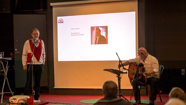 En och annan kulturkofta, en lokalpolitiker och äldre pensionärer mötte jag. Det var kanske en handfull människor som jag uppfattade som resande. På scenen stod Ronny Lundin från föreningen RUNG och gick igenom resandefolkets inte helt muntra historia i Sverige. Emellanåt spelade trubaduren Ronny Lundin visor som jag tror de flesta med resandebakgrund känner till.
