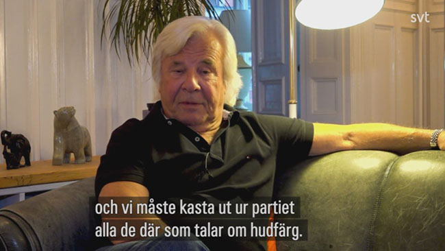 – Vi måste förstå att vi kan inte ursäkta muslimska reaktionära dårar i förorterna bara för att de är invandrare. Vi måste ha en sorts likaprincip för alla, och vi måste kasta ut ur partiet alla de där som springer omkring i vårt parti och talar om hudfärg.