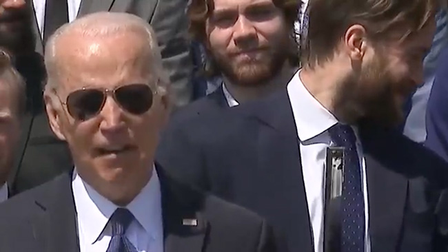 Med mästarlaget samlat runt omkring sig tog Biden till orda. Det var då felsägningen kom.