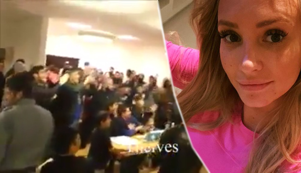 I klippet ser man migranter som för oväsen och skramlar med sina matbrickor i en matsal i protest mot att de inte får ett bättre boende eller lyxigare mat. Migranterna skriker dessutom ”tjuvar” på arabiska åt den svenska personalen eftersom de anser att de blivit fråntagna ”rätten” till bättre boende på skattebetalarnas bekostnad.