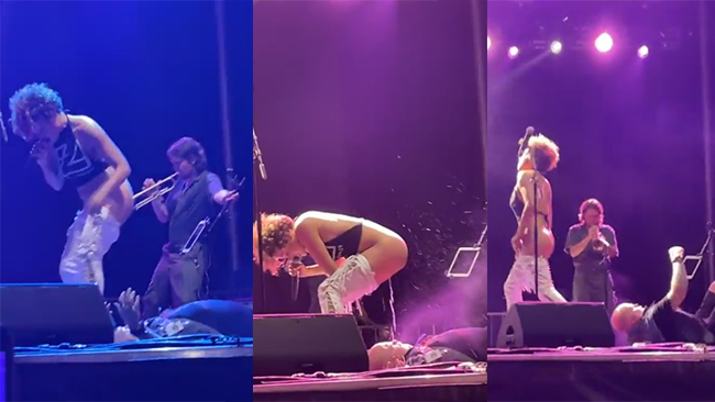 Här pissar hon publiken i ansiktet