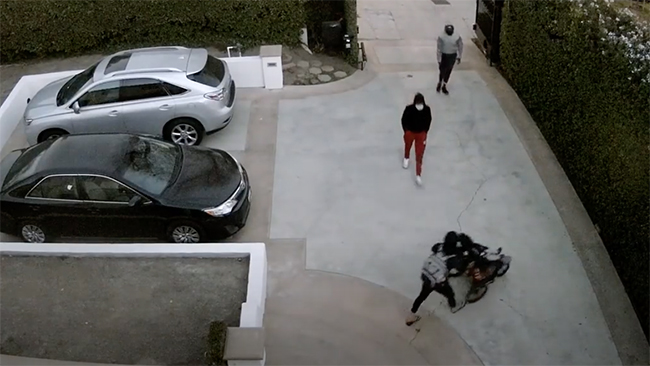 LOS ANGELES En kvinna som precis kommit hem efter en promenad med sin bebis i en barnvagn blir rånad av två samvetslösa män. Det visar en övervakningsfilm som Los Angeles-polisen har släppt.