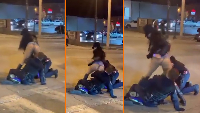 Två säkerhetsvakter i Kansas City fick stora problem efter en match med stadens lag i amerikansk fotboll. När de efter ett vilt slagsmål lyckats brotta ned en bråkstake kommer nämligen en kvinna fram och börjar ”twerka” med rumpan – rakt i den ena vaktens ansikte.
