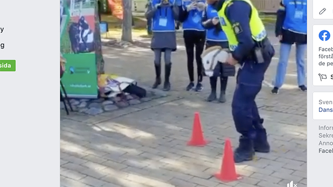 Uppsalapolisens grupp Gottsundagruppen deltog i Idrottens dag som arrangerades i Gottsunda den 5 oktober. En film där en av poliserna i full uniform inför publik springer runt en hinderbana med en käpphäst har lagts upp på Uppsalapolisens Facebooksida.
