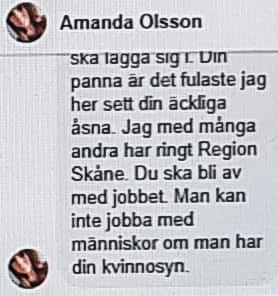 ”Äckliga åsna”, skriver Amanda Olsson som har synpunkter på Jenny Pipers människosyn. Nyheter Idag har sökt Amanda Olsson för att få veta mer.