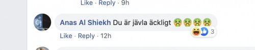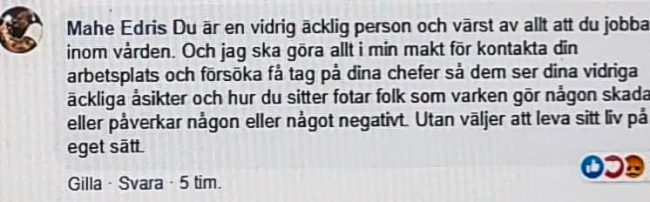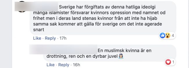 I kommentarsfältet syns många hatiska och sexistiska kommentarer. En man som uppger att han kommer från Irak kallar Jenny Piper för ”vidrig äcklig person”.