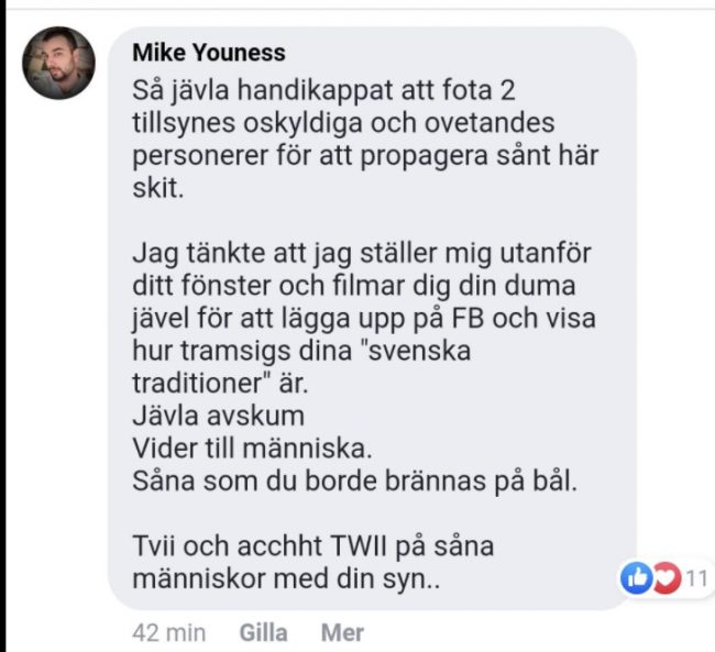 Såna som du borde brännas på bål”, skriver en Facebookanvändare.