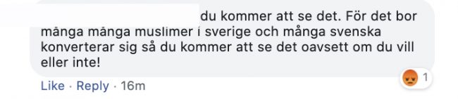 ”För det bor många många muslimer i sverige och många svenska konverterar sig så du kommer att se det oavsett om du vill det eller inte!”