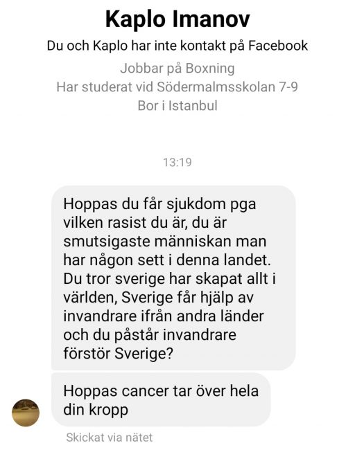 Det finns de som inte nöjt sig med att skriva i kommentersfältet. Några har också skickat privata meddelanden och trakasserat Jenny Piper. En man skriver att han önskar att Jenny Piper ska få cancer.
