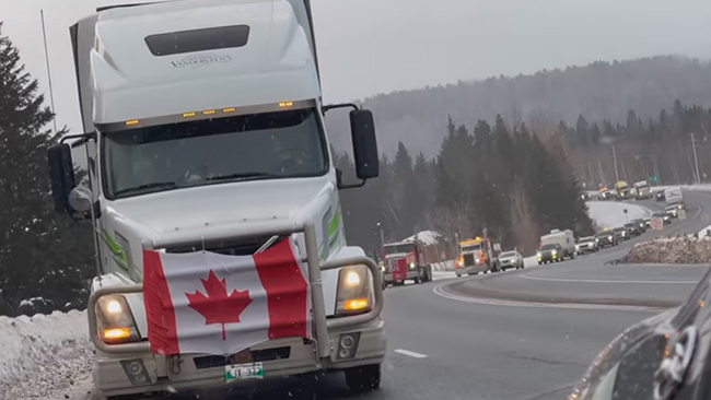 Kanadensiska lastbilschaufförer protesterar mot Trudeau i ”frihetskonvoj”