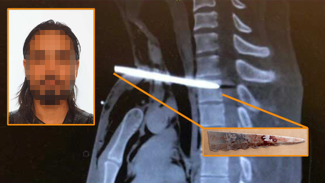 Han får tag på en annan kniv och står över sitt offer med den i handen när en annan av de boende kommer springande och sliter bort honom. Själv förnekar han dock att han tänkt hugga den skadade mannen igen, utan uppger i förhör att han tog den andra kniven för att av oklar anledning gömma den.