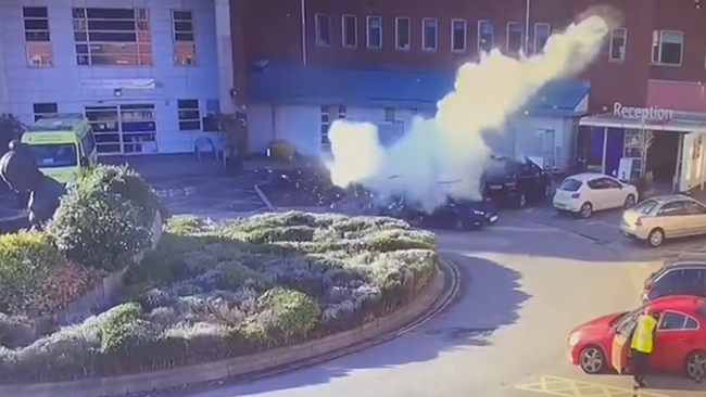På en övervakningsfilm ser man hur taxin kommer körande mot sjukhusets ingång och exploderar. Alla fönster i bilen krossas och rök bolmar ut innan föraren David Perry öppnar bildörren och tar sig ut. Sedan fattar bilen eld.