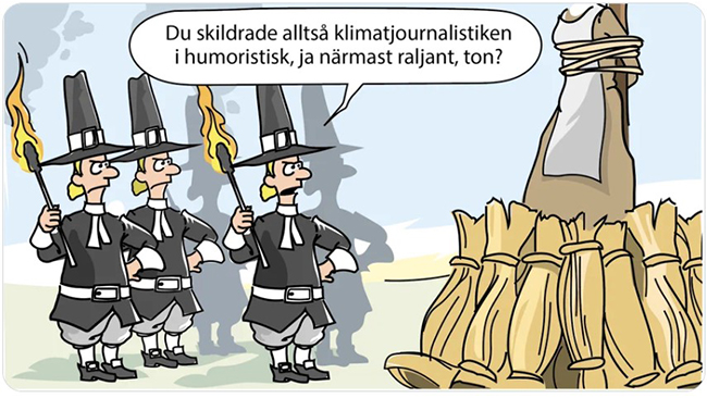 ”Det finns en manual att följa i offentligheten. Att inte göra det ska enligt samma manual ges namn som trivialisering, förnekelse och liknande etiketter som räcker som avfärdande. Det är ytterst riskabelt att den situationen uppstår i fråga efter fråga. Seriös journalistik ska inte agera som vetenskapens betjänt och hjälpreda.