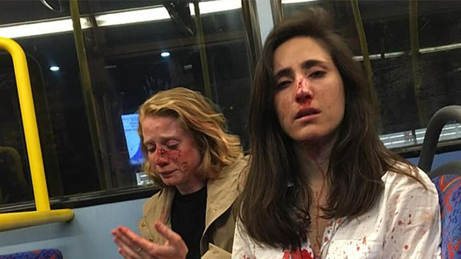Flygvärdinnan Melania Geymonat från Uruguay och hennes amerikanska flickvän Chris tog nattbussen hem till Melanias lägenhet efter en utekväll i London när fyra män började trakassera dem, rapporterar Daily Mirror.