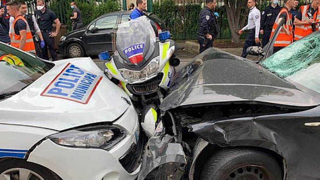 PARIS En misstänkt terrorist greps i en Parisförort på måndagen efter att han kört på två motorcykelpoliser, som klämdes fast mellan mannens BMW och en polisbil. Den ena polisen har försatts i koma. Den gripne mannen ska ha uppgett att han genomförde attacken för terrorgruppen IS.