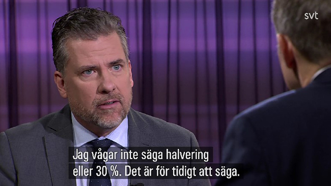 – Så jag vågar inte säga liksom halveras eller 30 procent, det är för tidigt att säga, fortsätter han.