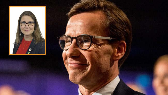De fortsätter sedan med att beskriva hur Kristersson behöver få ut Miljöpartiet ur riksdagen för att på så sätt kunna ”styra med rasisterna i baksätet”.