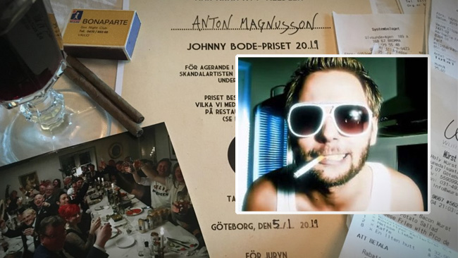 Årets prissumma uppgick till 10 265 kronor och 50 öre som Johnny Bode-sällskapet traditionsenligt ätit och druckit gott för. I år spenderades slantarna på Drottning Kristinas Jaktslott. Utöver kvittona från tillställningen får Anton Magnusson ett diplom och ett par vita handskar med Johnny Bode-sälsskapets logotyp, en referens till Bodes klassiker ”Runka mig med vita handskar på”.