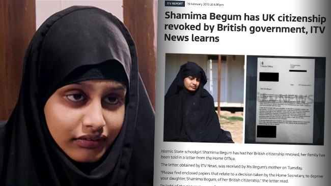 Under tisdagen rapporterar flera brittiska medier att Shamima Begum nu mister sitt brittiska medborgarskap. Det är den brittiska tevekanalen ITV som publicerar uppgifter från ett brev som Begums familj fått från brittiska myndigheter.