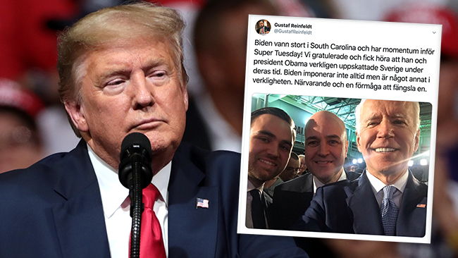 USA Joe Biden vann Demokraternas primärval i South Carolina på lördagen. På plats fanns Moderaternas förre partiledare och statsminister Fredrik Reinfeldt tillsammans med sonen Gustaf. De passade på att twittra ut en bild ihop med Biden när segern var klar."Närvarande och en förmåga att fängsla en", var Gustaf Reinfeldts omdöme.