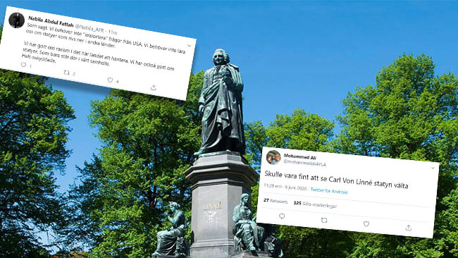 Flera antirasistiska aktivister och debattörer har uppmanat till rivning av statyer av Carl von Linné. Nu kräver en namninsamling att man ska "ta ner Carl von Linnés staty i Sverige". Under Black Lives Matters-demonstrationer i USA och Europa har flera statyer vandaliserats med klotter, rivits och i vissa fall tagits bort av myndigheter efter attacker.