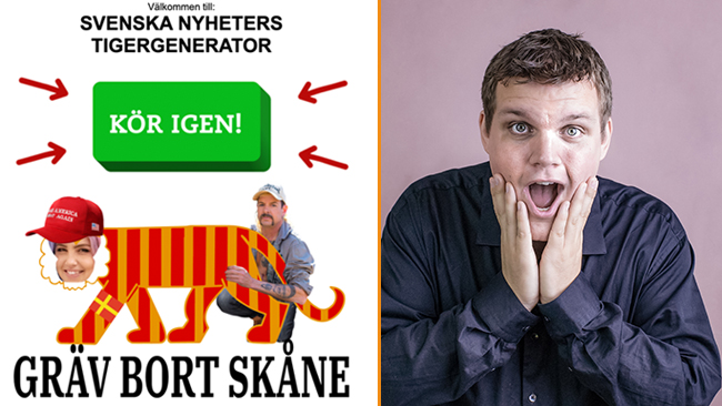 STOCKHOLM På torsdag inleds rättegången mot Aron Flam för upphovsrättsbrott för ett bokomslag med en heilande tiger. Nu har SVT:s satirprogram Svenska Nyheter som reaktion tagit fram en sajt där besökaren själv kan bygga sin egen tiger. – Om Aron inte får rita den här tigern kommer det att påverka oss. Då är mycket av det vi gör också olagligt, säger Fredrik...