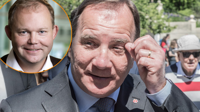 Stefan Löfven med Henrik Ekengren Oscarsson infälld. Foto: Nyheter Idag / Johan Wingborg