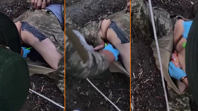 Vidriga videon: Ukrainsk krigsfånge kastreras