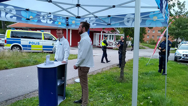 Sverigedemokraterna fick ringa och be polisen att komma tillbaka.
