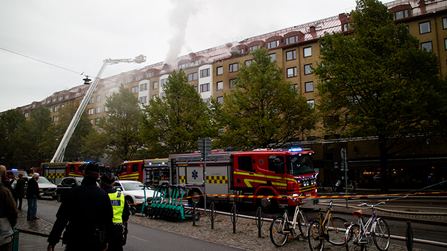 – Vi jobbar i detta nu med en brandhärd, en brand som vi har lokaliserat här inne på entréplan.