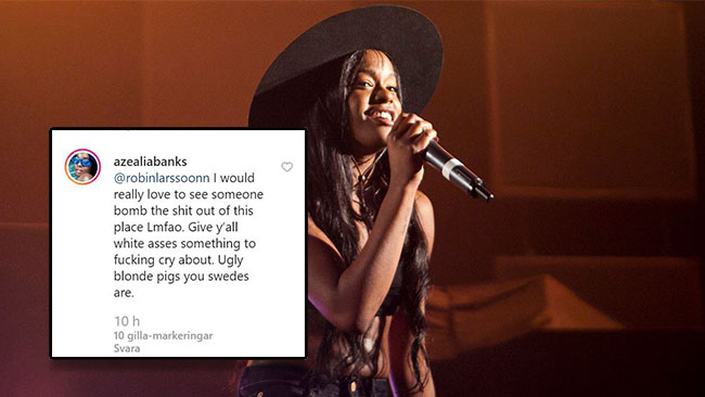Nu går rapparen Azealia Banks, som av okänd anledning befinner sig i Sverige, till hårt angrepp mot Sverige – men också svenska folket.