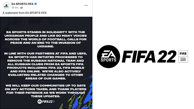 ”EA Sports står i solidaritet med det ukrainska folket och precis som så många röster runt om i fotbollsvärlden manar vi till fred och ett slut av invasionen av Ukraina.”
