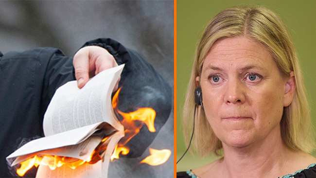 Andersson är även kritisk till att regeringens utredning om att stoppa koranbränningar genom en ändring av ordningslagen kommer presenteras först nästa sommar, och jämför med den fart med vilken den danska S-regeringen har agerat med sitt lagförslag om att förbjuda koranbränningar.