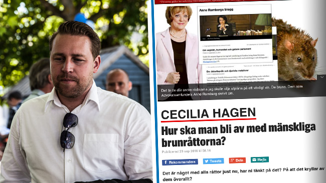 Och tidigare under torsdagen kunde Nyheter Idag berätta att Expressen-krönikören Cecilia Hagen nu går så långt att hon öppet frågar hur man ”ska bli kvitt de mänskliga brunråttorna? Med gift?”, en retorik som påminner starkt om hur nazister beskrev judar på 30-talet.