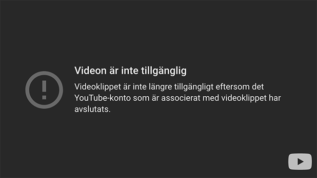 ”Kl 16.45 idag fick vi ett mail fån Youtube att vi brutit mot reglerna för communityn och att vårt Youtube-konto därför avslutats.