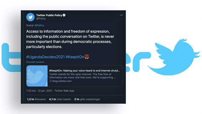 UGANDA Myndigheterna i Uganda har stängt ner tillgång till alla sociala medier inför landets presidentval på torsdag. En av de kritiska rösterna mot åtgärden är sociala medie-plattformen Twitter som i en tweet skriver att ”tillgång till information och yttrandefrihet, inklusive det offentliga samtalet på Twitter, är aldrig viktigare än under demokratiska processer, särskilt val”. Nu anklagas Twitter för att hyckla, något som New York Post rapporterat om.