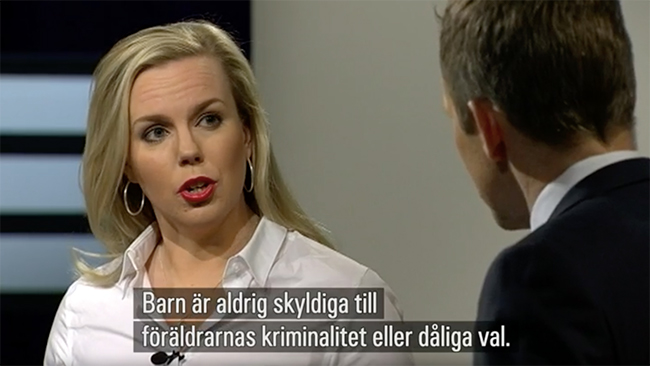 V:s rättspolitiska talesperson Linda Westerlund Snecker konstaterade att barn aldrig kan hållas ansvariga för sina föräldrars brott. Sverige har en skyldighet att ge dem en normal uppväxt.