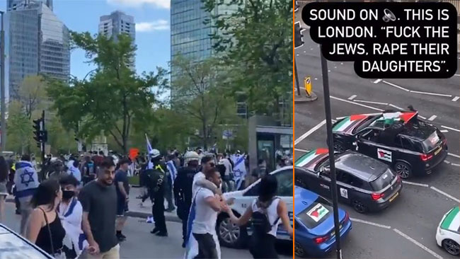 En film som spreds på sociala medier på söndagen visar hur någon ropar ”Knulla judarna. Våldta deras döttrar” från en bil utsmyckad med palestinsk flagga. Bilen filmades när den körde på Finchley Road, vid St John’s Wood i norra London.